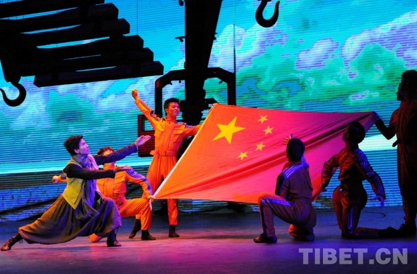 圖為《圓夢(mèng)》歌舞劇在國家大劇院的演出劇照——青藏鐵路成功鋪軌(唐召明2015年10月13日攝)