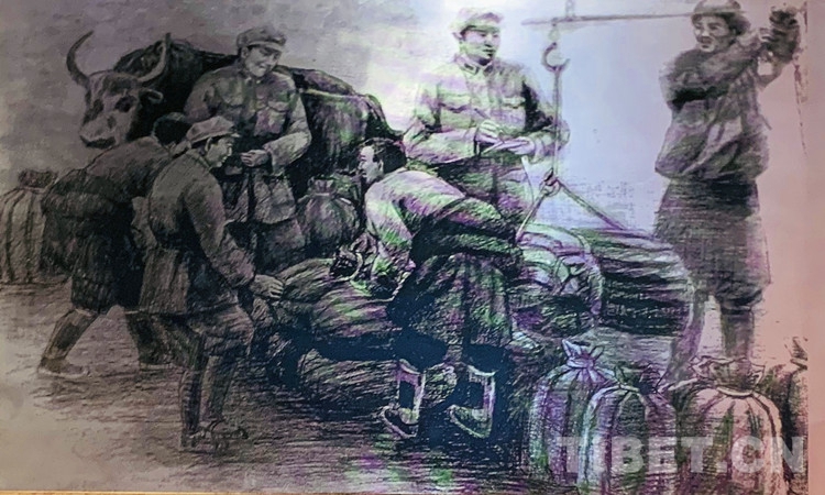 圖為甘孜百姓為紅軍支援糧食。