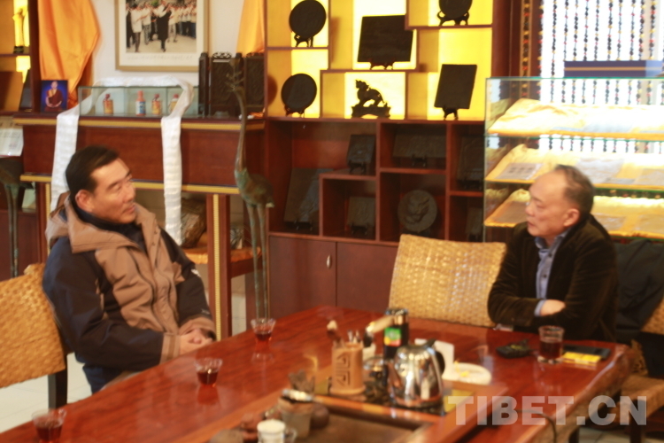 圖為雅安茶廠負(fù)責(zé)人李朝貴(右)接受中國(guó)西藏網(wǎng)記者采訪 攝影:登真巴珍