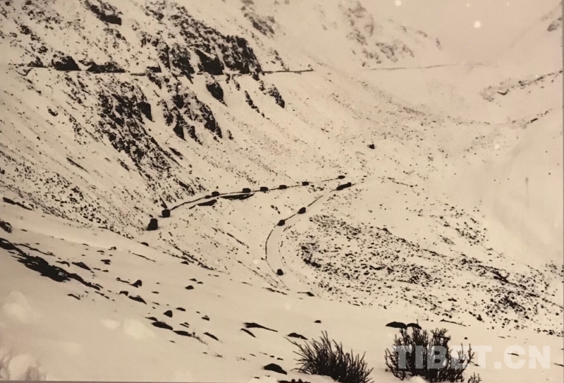 圖為車隊翻越雀兒山,當年至少需要一個多小時才能翻越雀兒山。 翻拍:龍真多吉