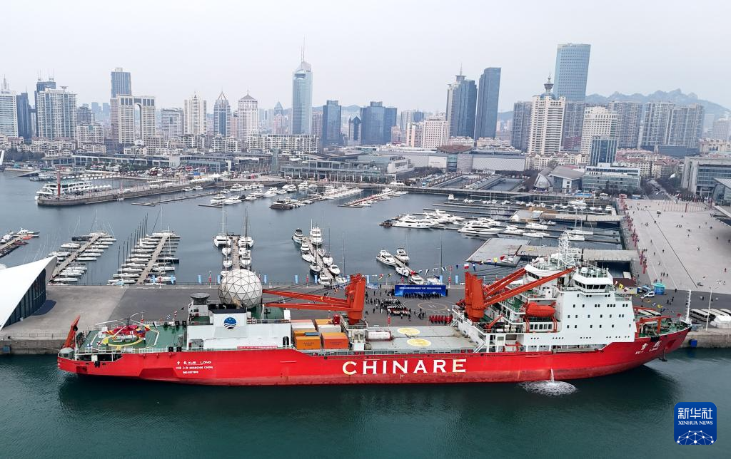“雪龍”號(hào)極地考察船??壳鄭u奧帆基地碼頭(4月10日攝,無人機(jī)照片)。