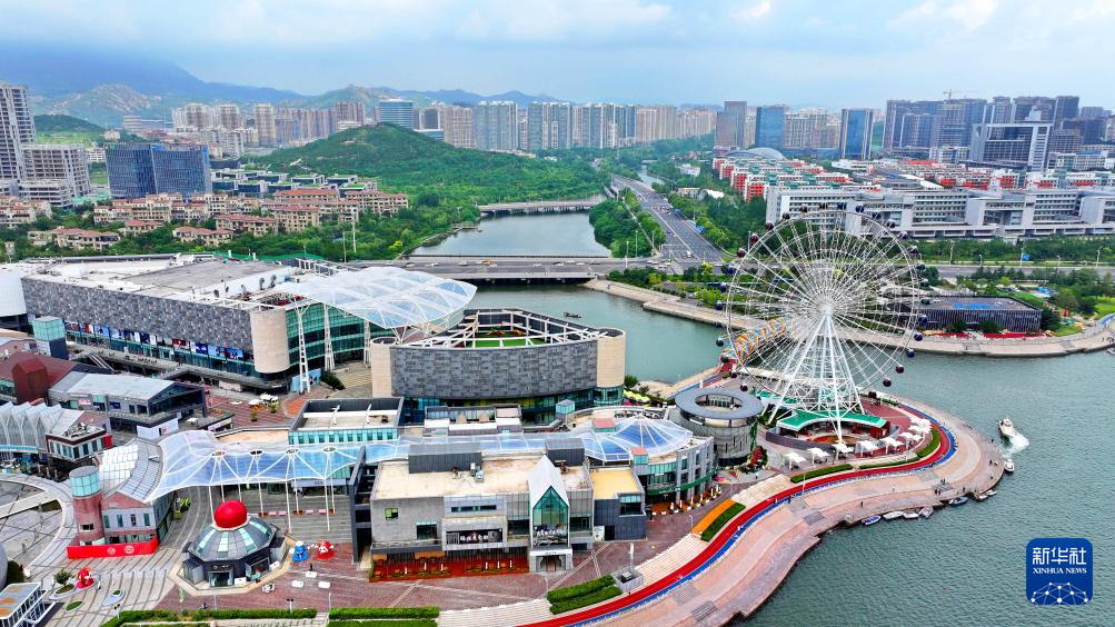 這是青島西海岸新區(qū)“海上嘉年華”市民購物休閑綜合體(8月14日攝,無人機(jī)照片)。