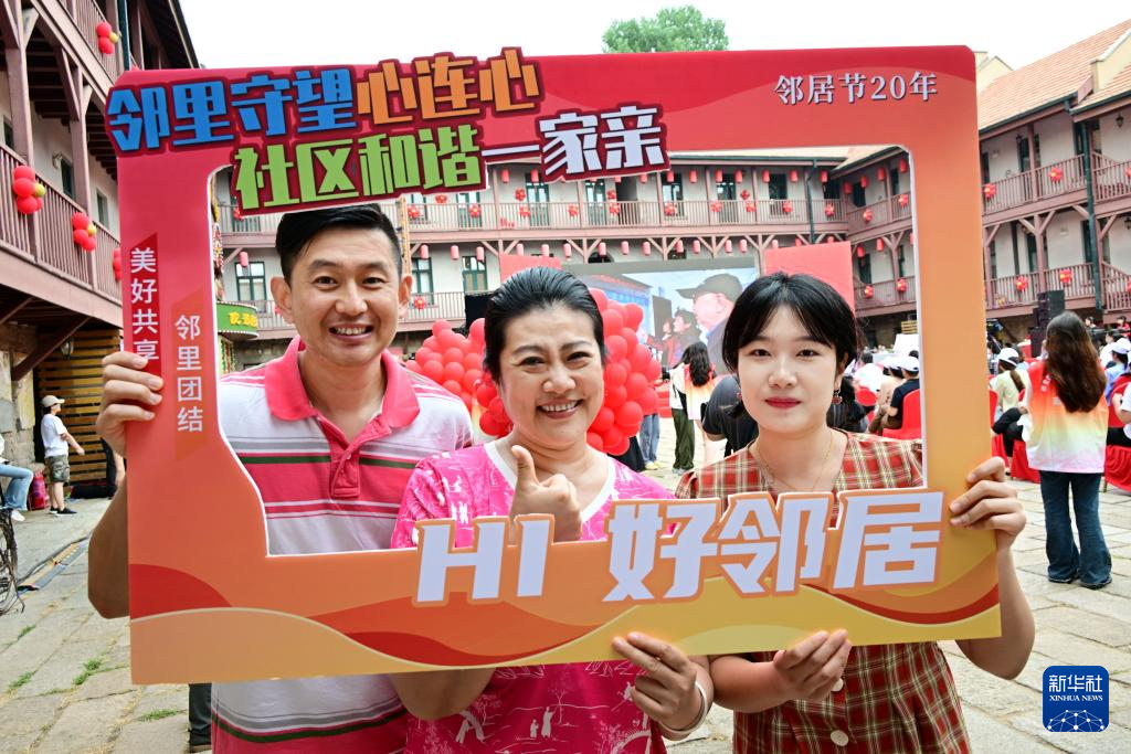 市民在青島鄰居節(jié)20周年系列活動(dòng)啟動(dòng)儀式上合影(6月17日攝)。