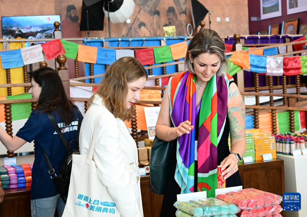 參加2024“邂逅上合·美麗青島”來華留學(xué)生社會(huì)實(shí)踐活動(dòng)的留學(xué)生在位于青島膠州的上合之珠國(guó)際博覽中心參觀(6月25日攝)。
