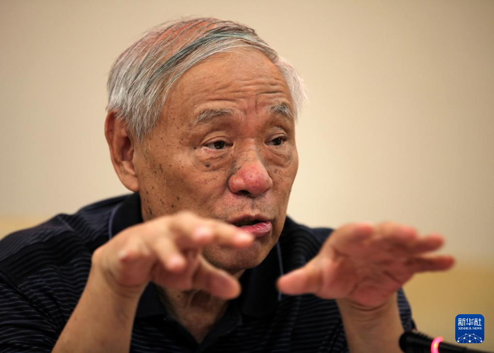 王小謨?cè)谖挥诒本┑碾娮涌茖W(xué)研究院回答媒體提問(wèn)(2013年7月18日攝)。新華社記者 金立旺 攝