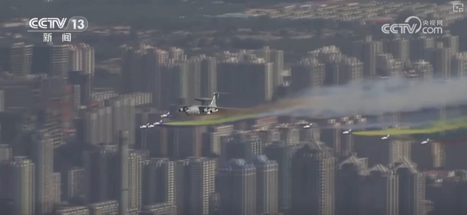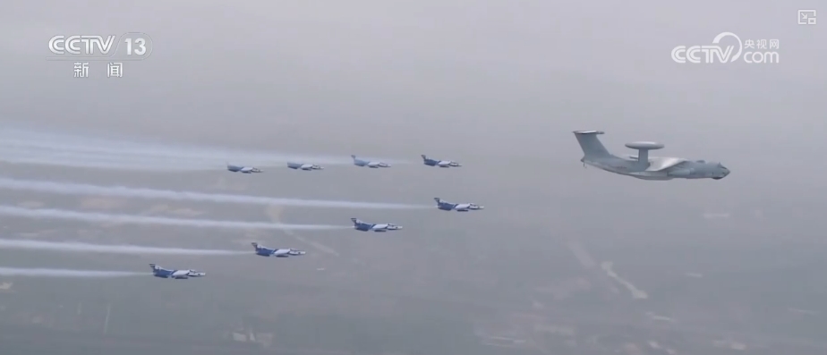率先飛過天安門上空的是多機編隊的領(lǐng)隊梯隊,帶隊長機是空警2000預警機,“藍天嬌子”攜雷霆之勢展空中雄姿。