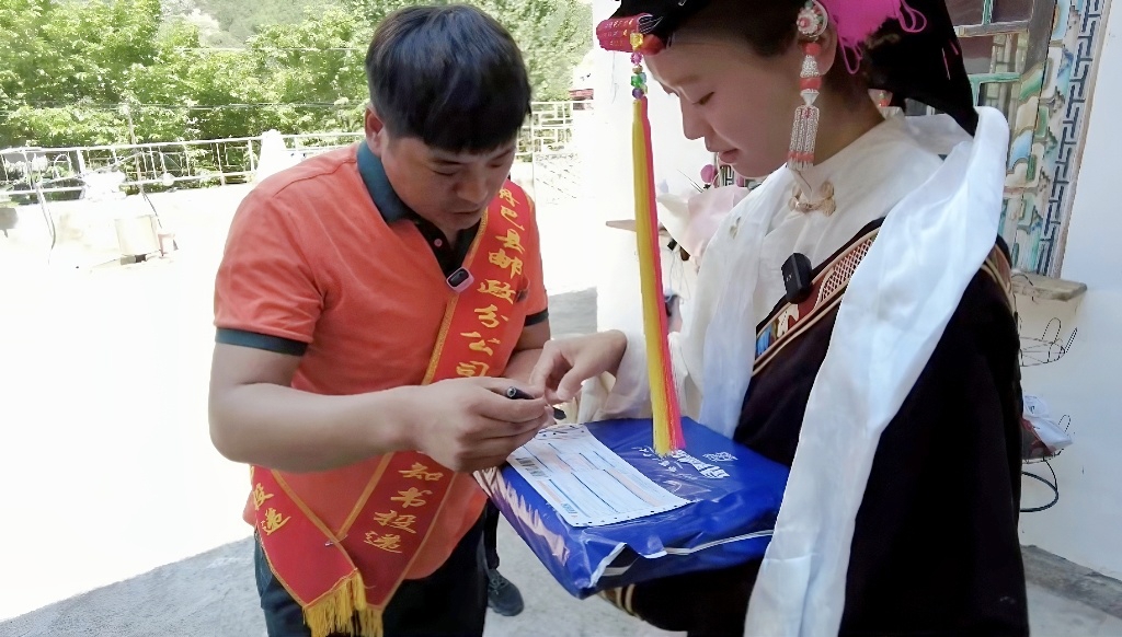投遞員向西繞拉姆確認信息。