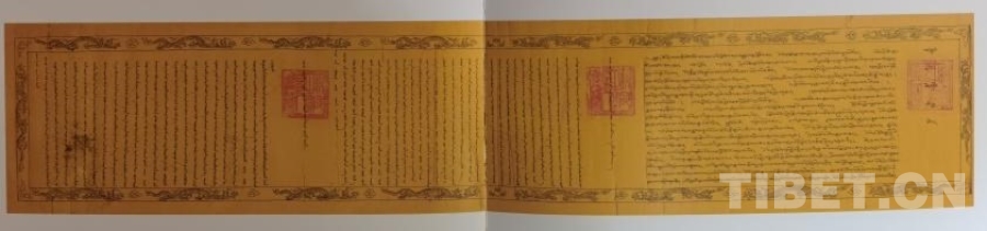 這是1757年乾隆皇帝命六世第穆呼圖克圖阿旺降白德勒嘉措出任西藏地方第一任攝政的敕諭。它以藏文、滿文、蒙古文3種文字書寫,承載著重要的歷史信息。
