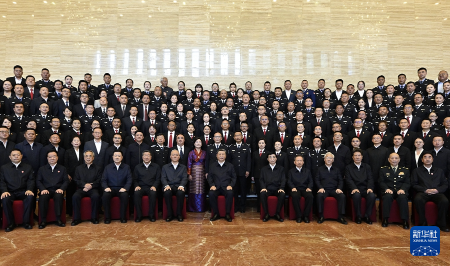 8月20日下午,中共中央總書(shū)記、國(guó)家主席、中央軍委主席習(xí)近平在拉薩親切接見(jiàn)西藏自治區(qū)政法干警代表,并同大家合影留念。新華社記者 殷博古 攝