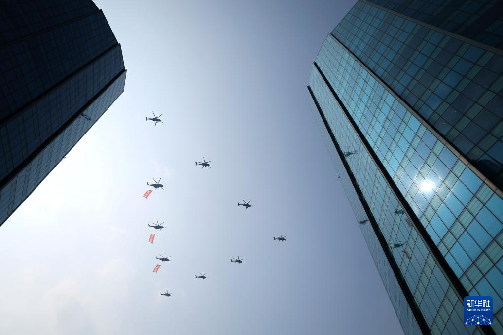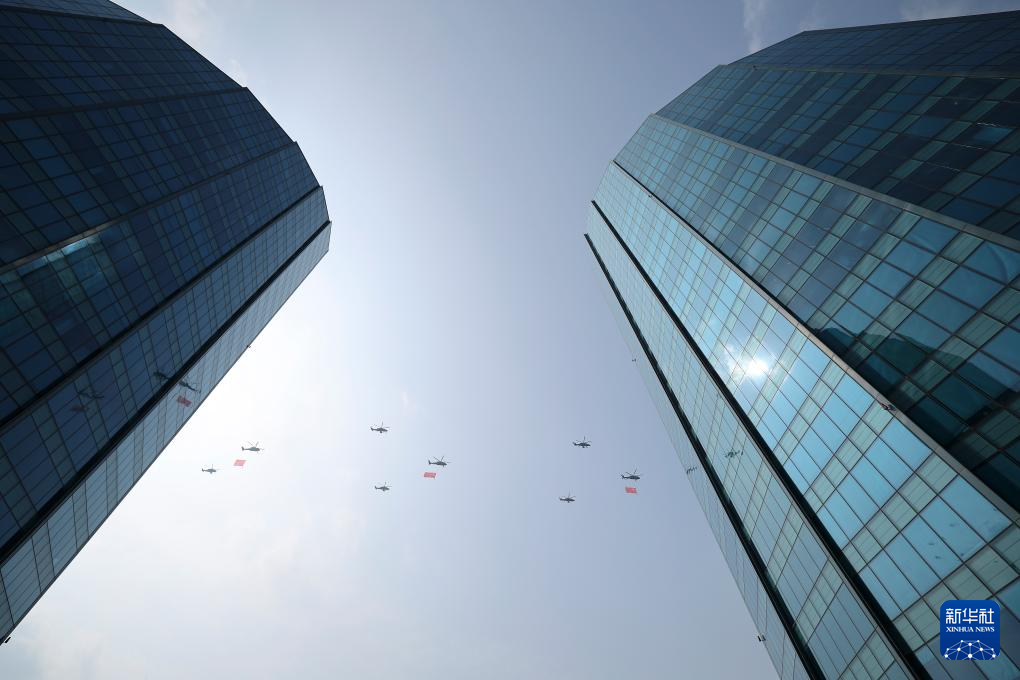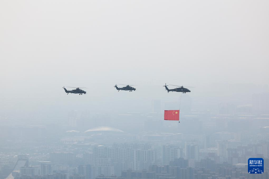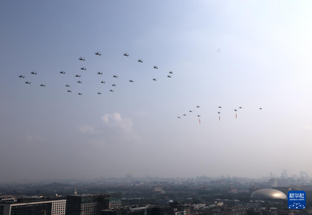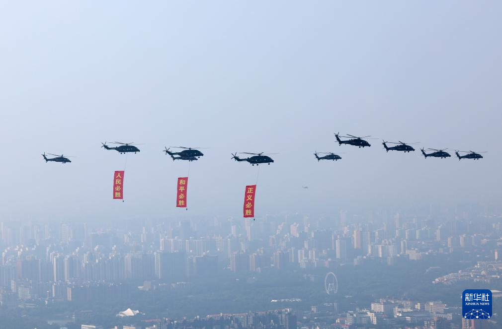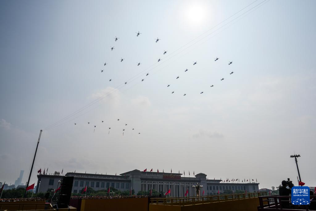 9月3日,紀(jì)念中國人民抗日戰(zhàn)爭暨世界反法西斯戰(zhàn)爭勝利80周年大會(huì)在北京隆重舉行。這是空中護(hù)旗梯隊(duì)。