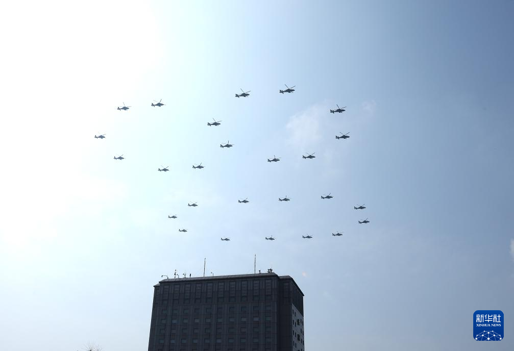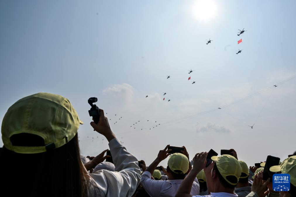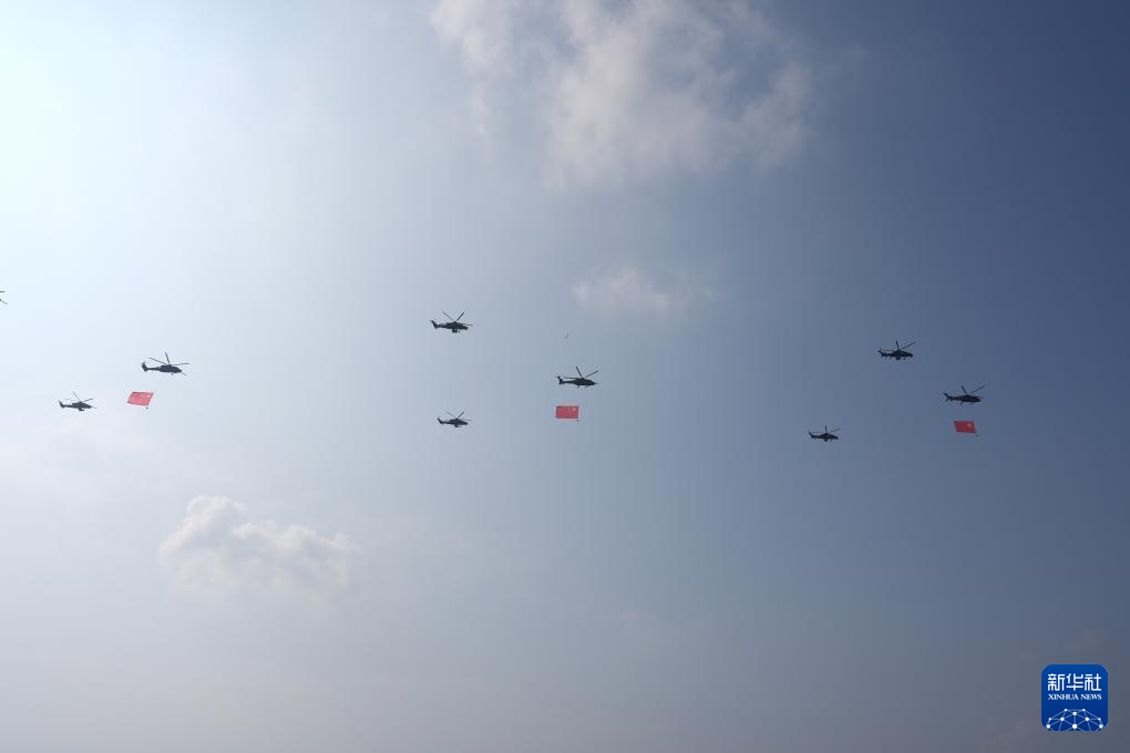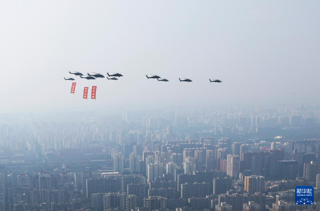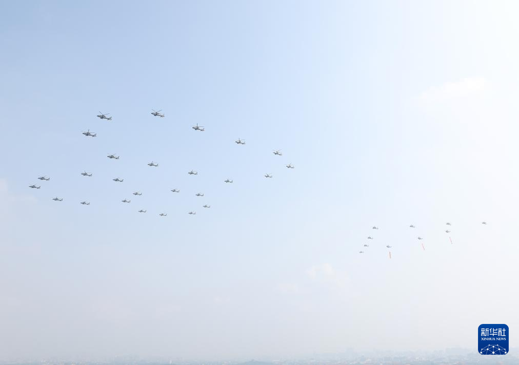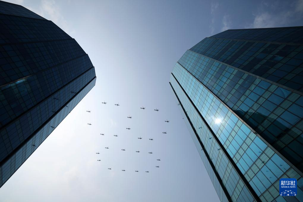 9月3日,紀(jì)念中國人民抗日戰(zhàn)爭暨世界反法西斯戰(zhàn)爭勝利80周年大會(huì)在北京隆重舉行。這是空中護(hù)旗梯隊(duì)。