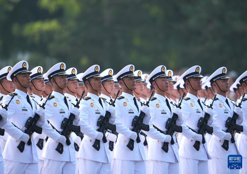 9月3日,紀(jì)念中國人民抗日戰(zhàn)爭暨世界反法西斯戰(zhàn)爭勝利80周年大會(huì)在北京隆重舉行。這是海軍方隊(duì)接受檢閱。