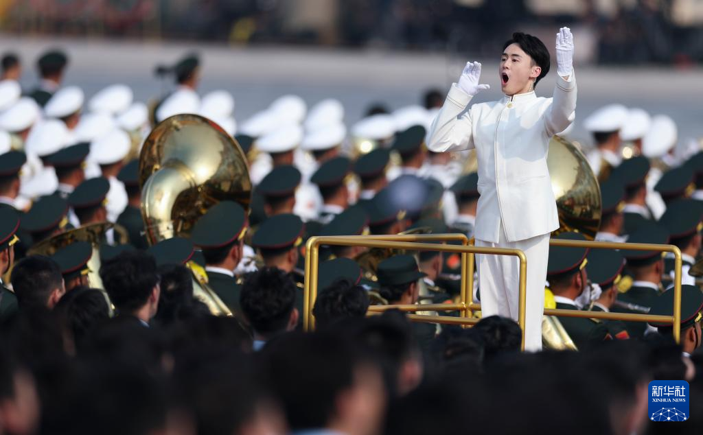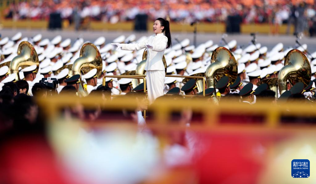 9月3日,紀(jì)念中國人民抗日戰(zhàn)爭暨世界反法西斯戰(zhàn)爭勝利80周年大會(huì)在北京隆重舉行。這是中國人民解放軍聯(lián)合軍樂團(tuán)與合唱團(tuán)在奏唱樂曲。