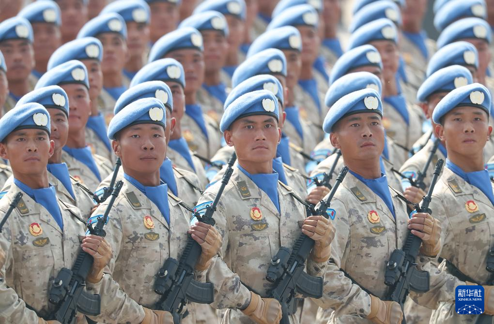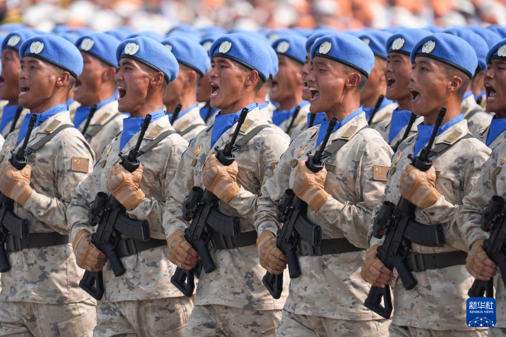 9月3日,紀(jì)念中國人民抗日戰(zhàn)爭暨世界反法西斯戰(zhàn)爭勝利80周年大會(huì)在北京隆重舉行。這是維和部隊(duì)方隊(duì)接受檢閱。
