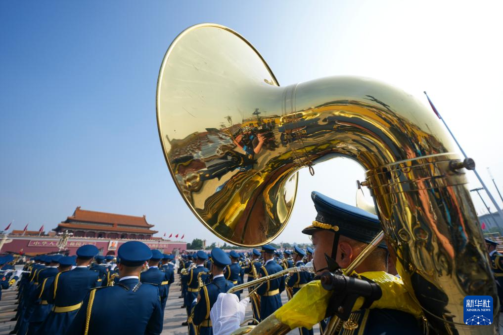 9月3日,紀(jì)念中國人民抗日戰(zhàn)爭暨世界反法西斯戰(zhàn)爭勝利80周年大會(huì)在北京隆重舉行。這是中國人民解放軍聯(lián)合軍樂團(tuán)在演奏。