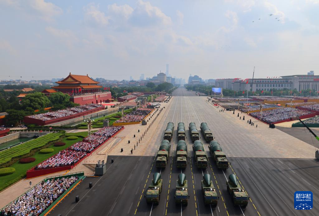 9月3日,紀(jì)念中國人民抗日戰(zhàn)爭暨世界反法西斯戰(zhàn)爭勝利80周年大會(huì)在北京隆重舉行。這是核導(dǎo)彈第二方隊(duì)通過天安門廣場。
