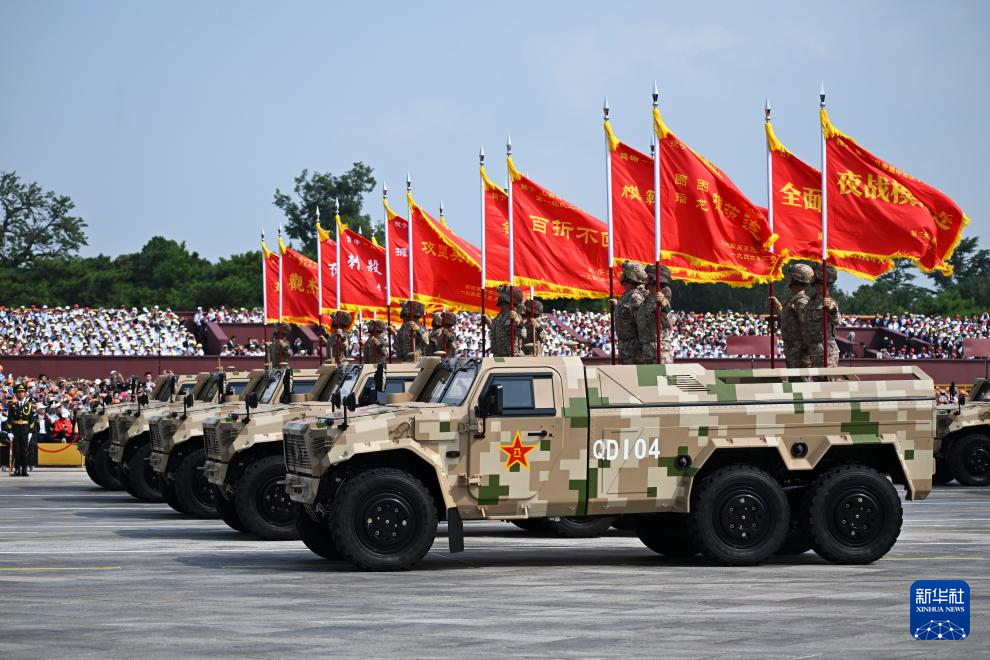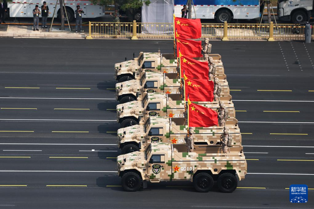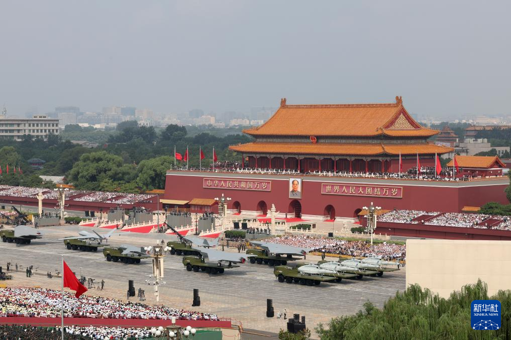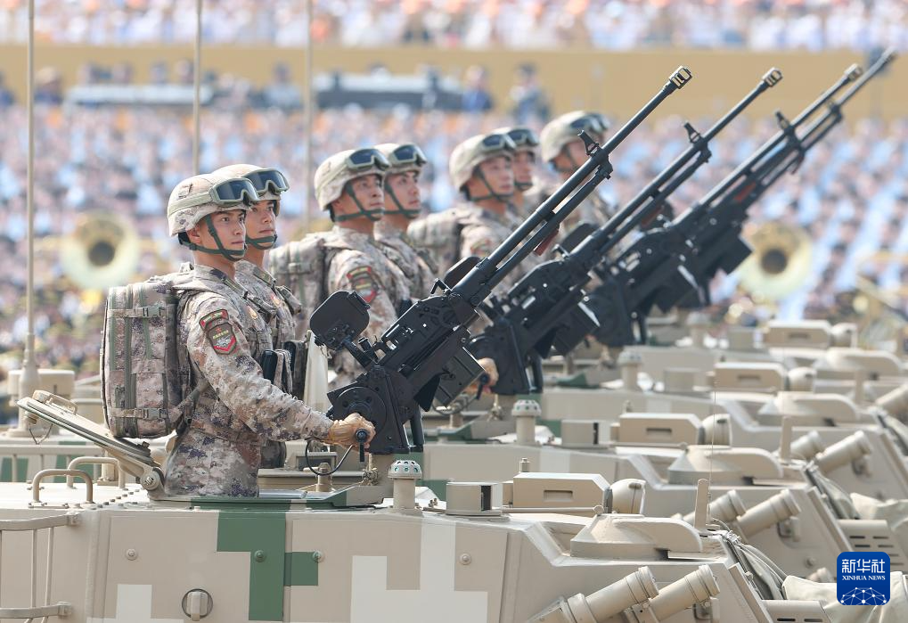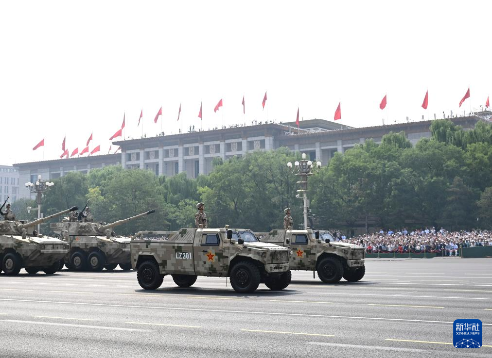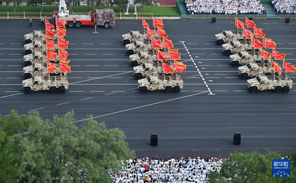 9月3日,紀(jì)念中國人民抗日戰(zhàn)爭暨世界反法西斯戰(zhàn)爭勝利80周年大會(huì)在北京隆重舉行。這是裝備方隊(duì)接受檢閱。
