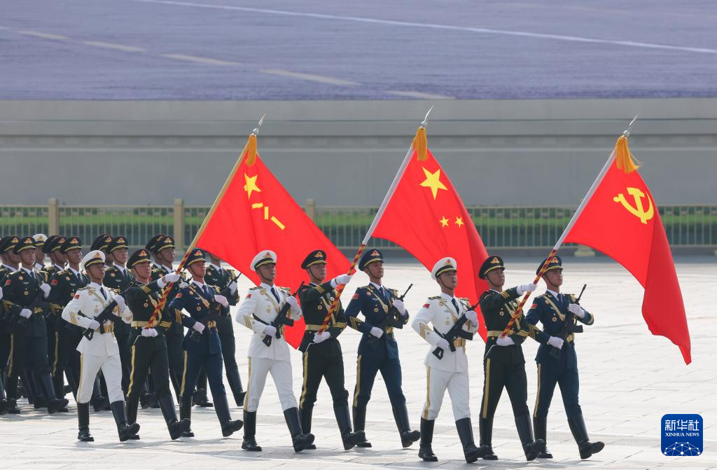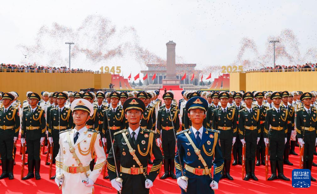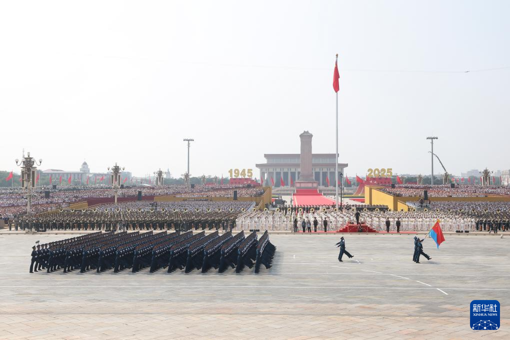 9月3日,紀(jì)念中國人民抗日戰(zhàn)爭暨世界反法西斯戰(zhàn)爭勝利80周年大會(huì)在北京隆重舉行。這是國旗護(hù)衛(wèi)隊(duì)在天安門廣場列隊(duì)。