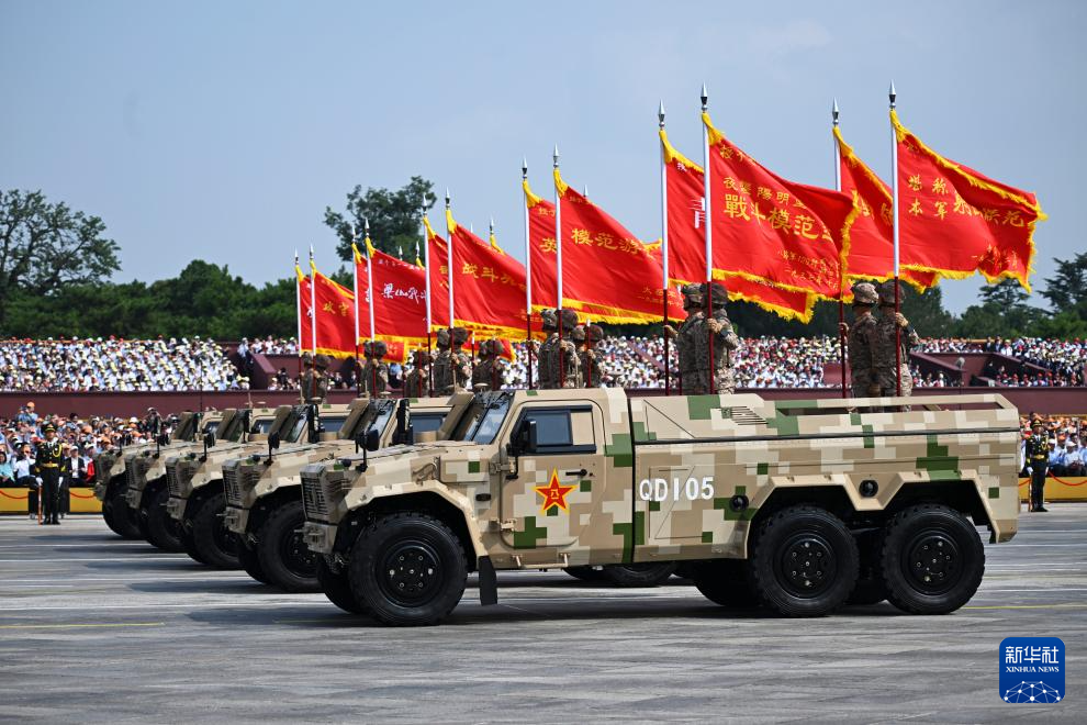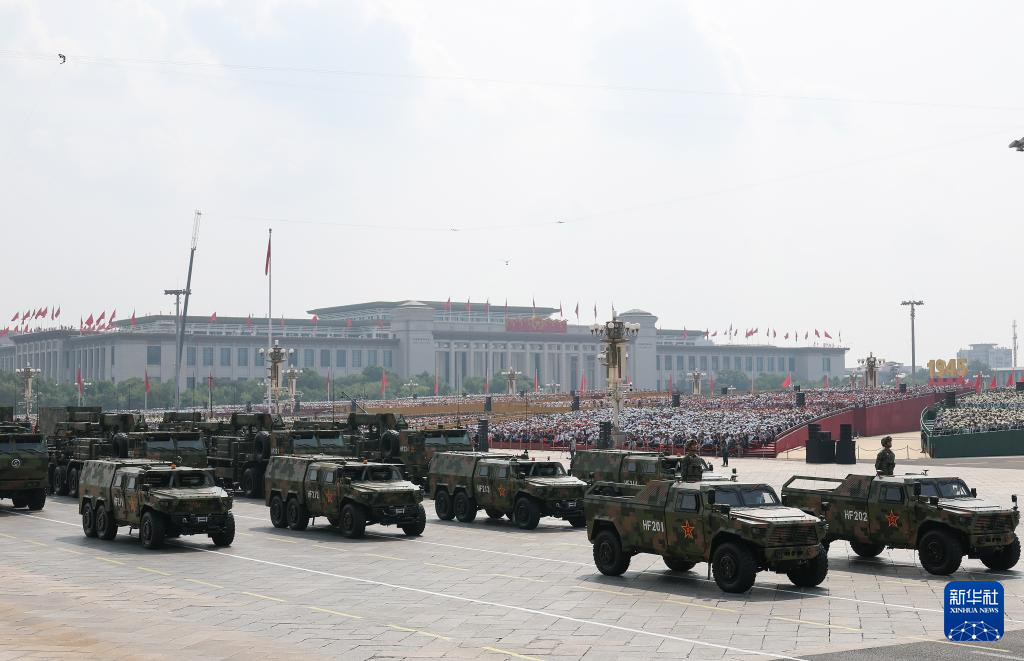 9月3日,紀(jì)念中國人民抗日戰(zhàn)爭暨世界反法西斯戰(zhàn)爭勝利80周年大會(huì)在北京隆重舉行。這是裝備保障方隊(duì)接受檢閱。