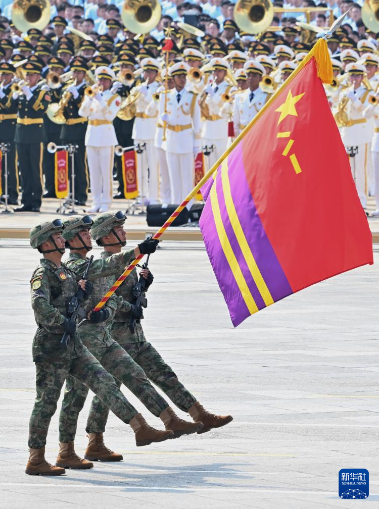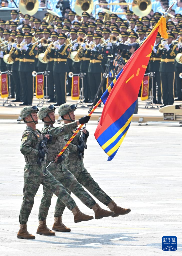 9月3日,紀念中國人民抗日戰(zhàn)爭暨世界反法西斯戰(zhàn)爭勝利80周年大會在北京隆重舉行。這是戰(zhàn)旗方隊接受檢閱。