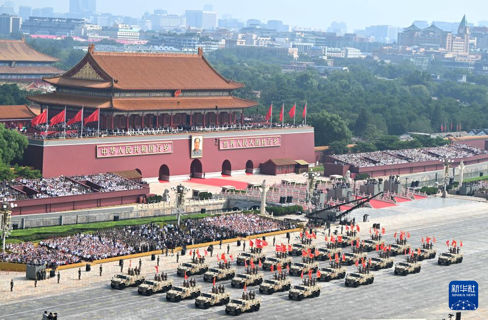 9月3日,紀念中國人民抗日戰(zhàn)爭暨世界反法西斯戰(zhàn)爭勝利80周年大會在北京隆重舉行。這是遠程火炮方隊接受檢閱。