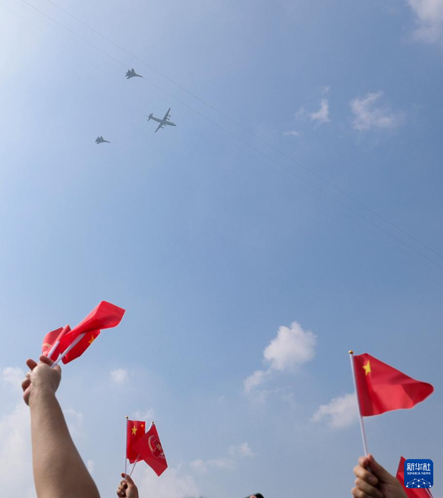 9月3日,紀念中國人民抗日戰(zhàn)爭暨世界反法西斯戰(zhàn)爭勝利80周年大會在北京隆重舉行。這是空中梯隊接受檢閱。