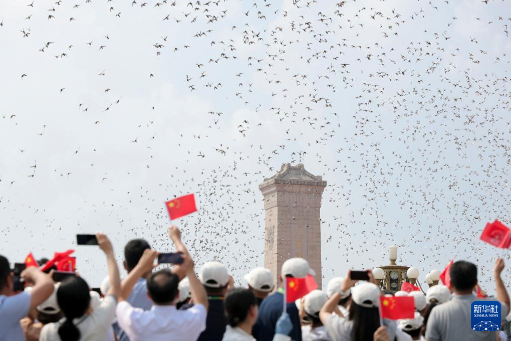 9月3日,紀念中國人民抗日戰(zhàn)爭暨世界反法西斯戰(zhàn)爭勝利80周年大會在北京隆重舉行。這是紀念大會現(xiàn)場放飛鴿子。