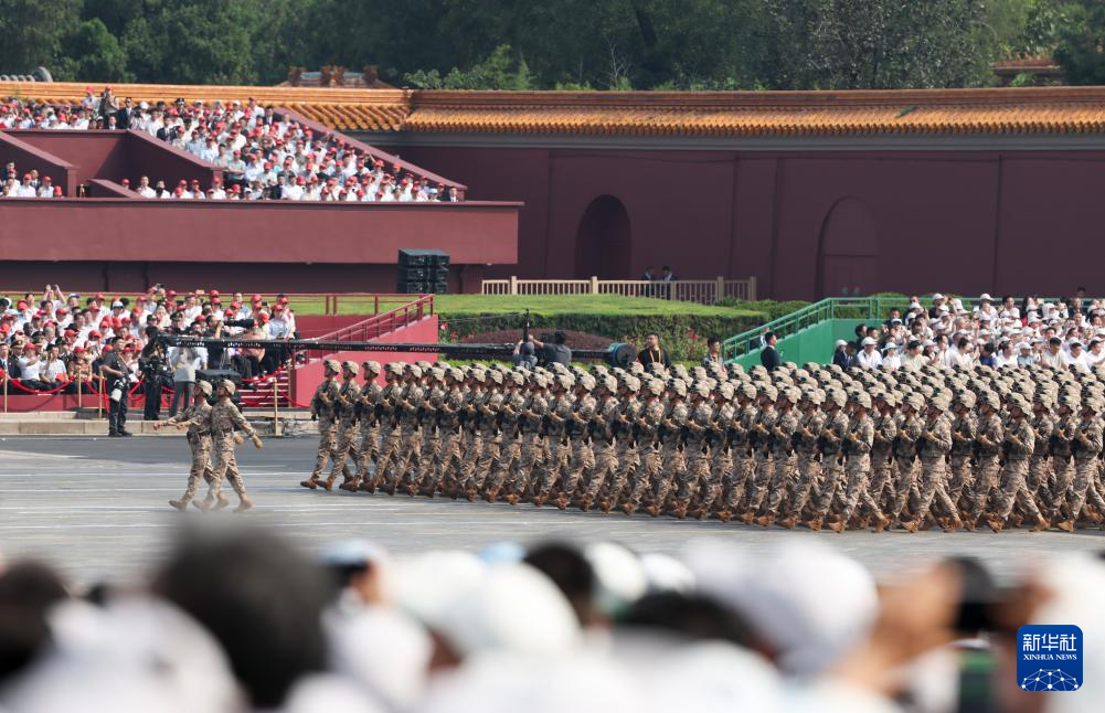 9月3日,紀(jì)念中國人民抗日戰(zhàn)爭暨世界反法西斯戰(zhàn)爭勝利80周年大會(huì)在北京隆重舉行。這是中國人民解放軍儀仗方隊(duì)。