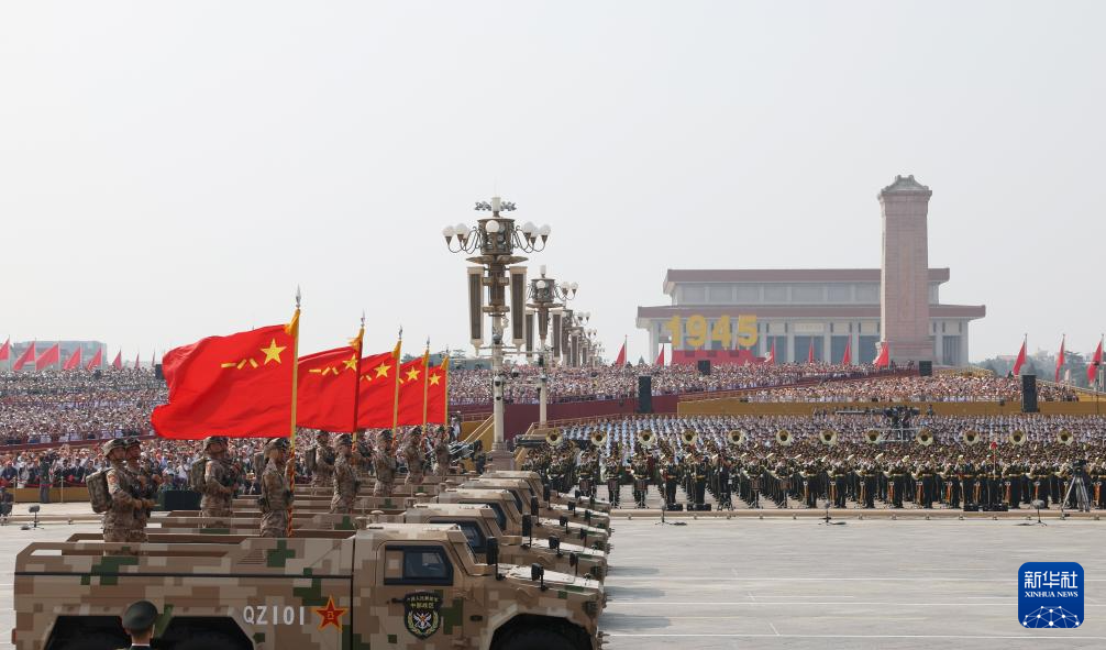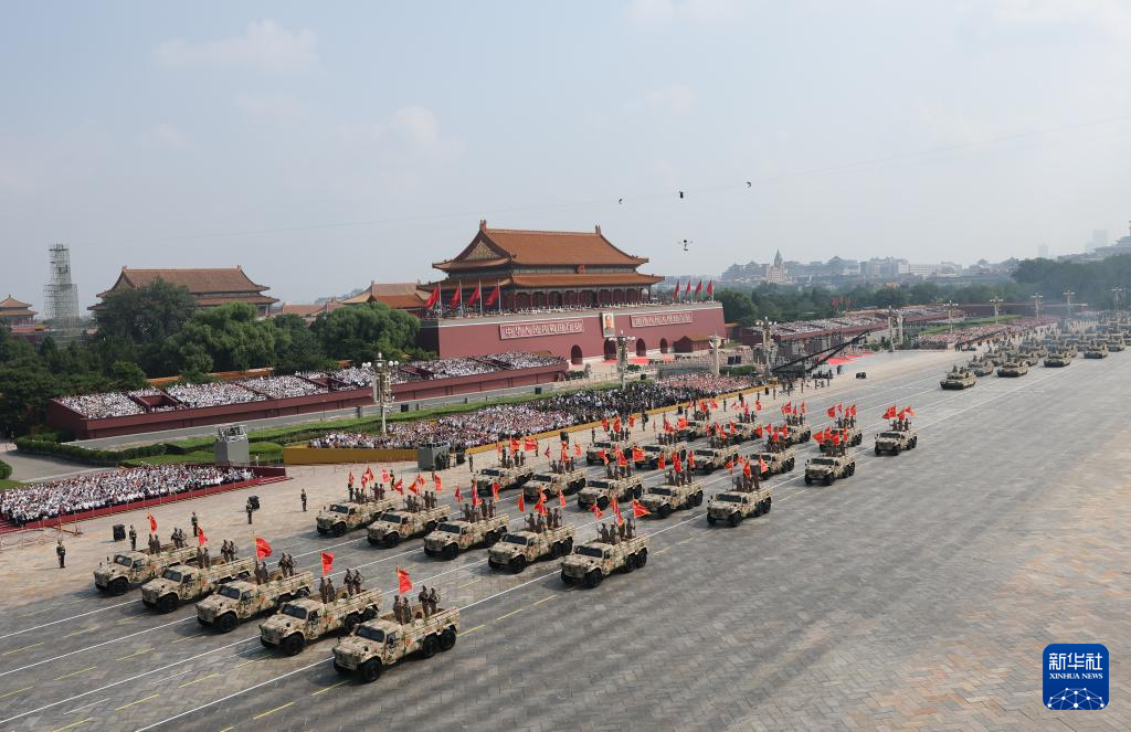 9月3日,紀(jì)念中國人民抗日戰(zhàn)爭暨世界反法西斯戰(zhàn)爭勝利80周年大會(huì)在北京隆重舉行。這是戰(zhàn)旗方隊(duì)和裝備方隊(duì)接受檢閱。