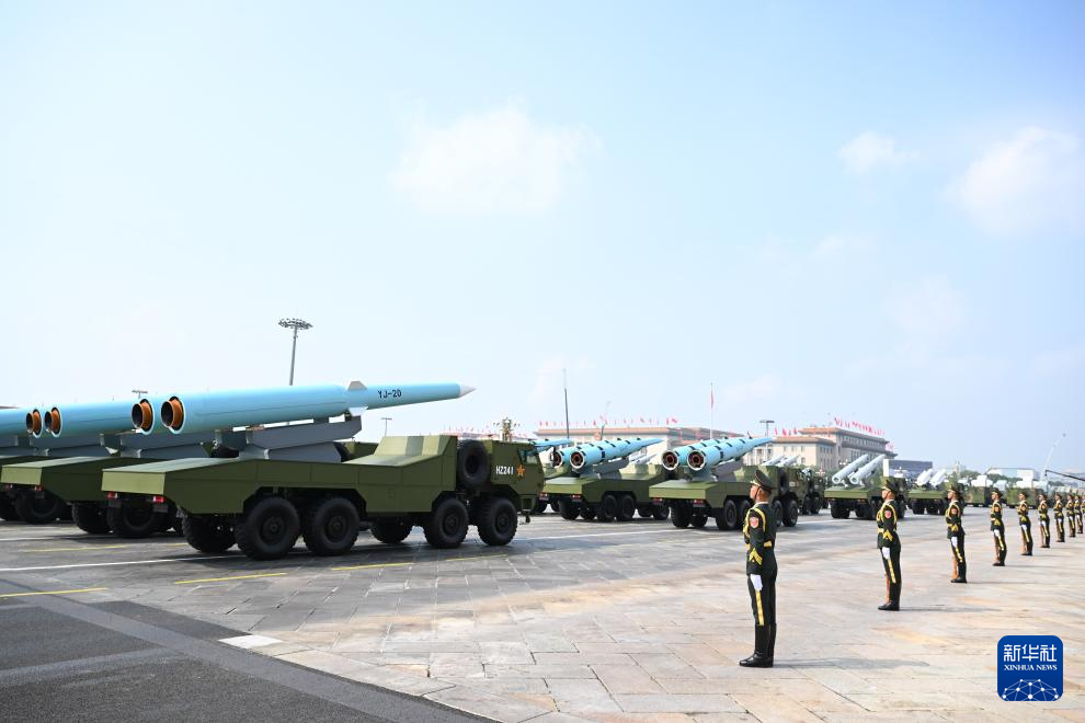 9月3日,紀(jì)念中國人民抗日戰(zhàn)爭暨世界反法西斯戰(zhàn)爭勝利80周年大會(huì)在北京隆重舉行。這是反艦導(dǎo)彈方隊(duì)接受檢閱。