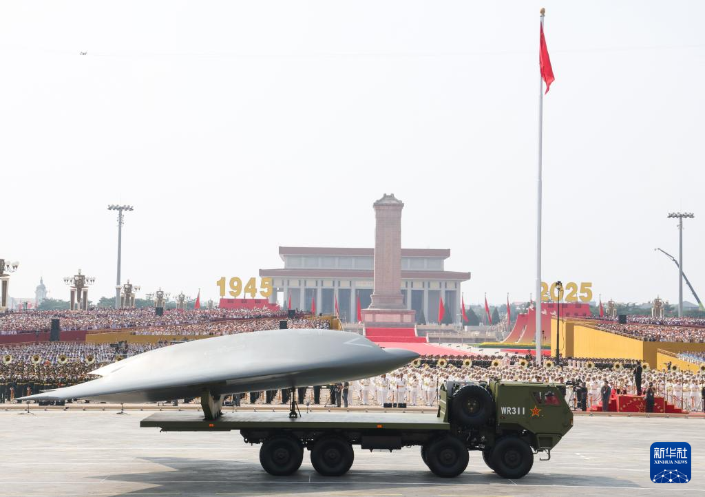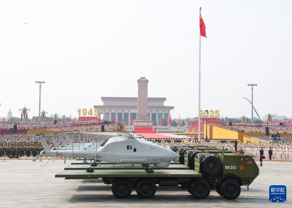 9月3日,紀(jì)念中國人民抗日戰(zhàn)爭暨世界反法西斯戰(zhàn)爭勝利80周年大會(huì)在北京隆重舉行。這是空中無人作戰(zhàn)方隊(duì)接受檢閱。