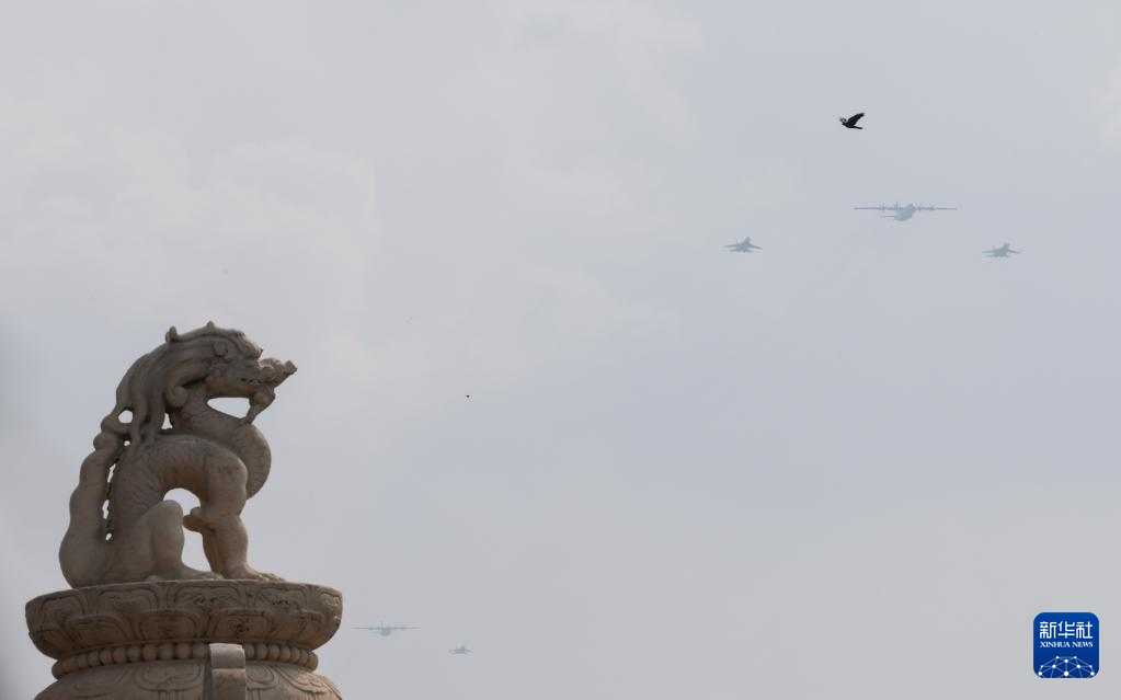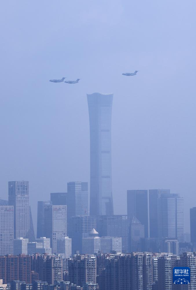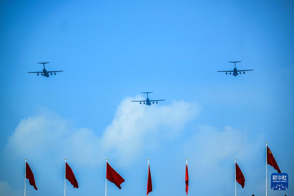 9月3日,紀(jì)念中國人民抗日戰(zhàn)爭暨世界反法西斯戰(zhàn)爭勝利80周年大會(huì)在北京隆重舉行。這是運(yùn)輸機(jī)梯隊(duì)接受檢閱。