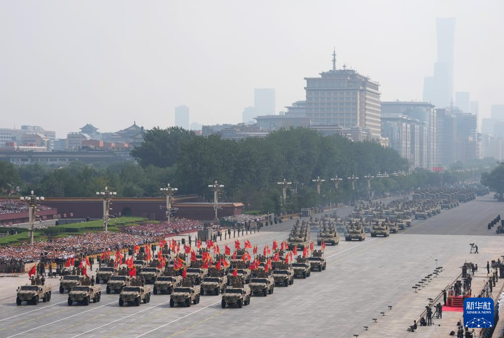 9月3日,紀(jì)念中國人民抗日戰(zhàn)爭暨世界反法西斯戰(zhàn)爭勝利80周年大會(huì)在北京隆重舉行。這是陸軍方隊(duì)通過天安門廣場。