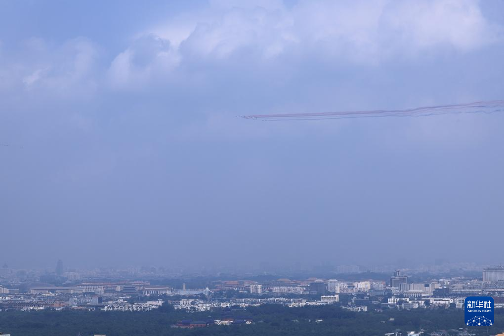 9月3日,紀(jì)念中國人民抗日戰(zhàn)爭暨世界反法西斯戰(zhàn)爭勝利80周年大會(huì)在北京隆重舉行。這是教練機(jī)梯隊(duì)飛過天安門廣場上空。