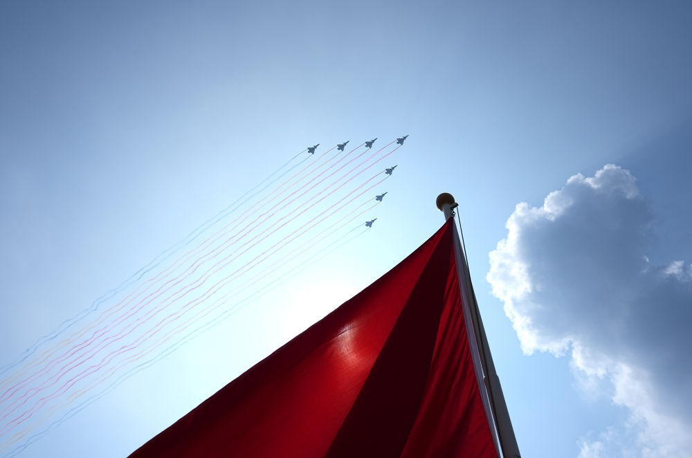 當(dāng)置身歡呼的人群,遠(yuǎn)望湛藍(lán)天空,看著7架殲-10表演機(jī)呼嘯而過,留下14道絢麗的彩煙,耳畔再次回響這豪邁的宣示——中華民族偉大復(fù)興勢(shì)不可擋!人類和平與發(fā)展的崇高事業(yè)必將勝利!