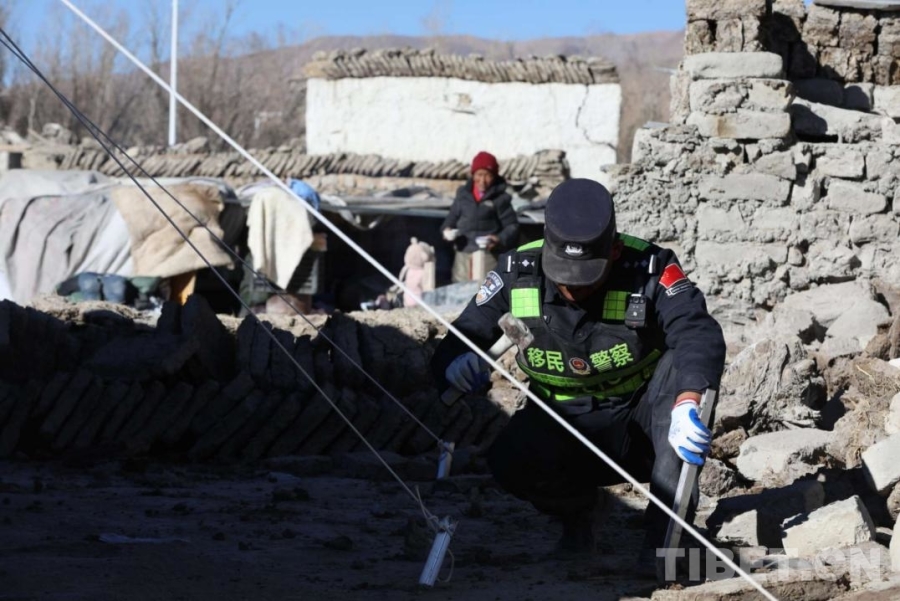 圖為武警官兵與公安民警在定日地震受災(zāi)最嚴(yán)重的村莊之一定日縣長所鄉(xiāng)古榮村為受災(zāi)群眾轉(zhuǎn)移財產(chǎn) (攝于2025年1月10日) 攝影:王淑