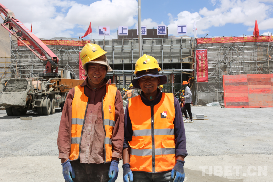 圖為森嘎村災(zāi)后重建現(xiàn)場,森嘎村村民米瑪(左)和頓珠(右)參與以工代賑項目,用自己的雙手建設(shè)家園(攝于2025年6月15日)攝影:旦曲