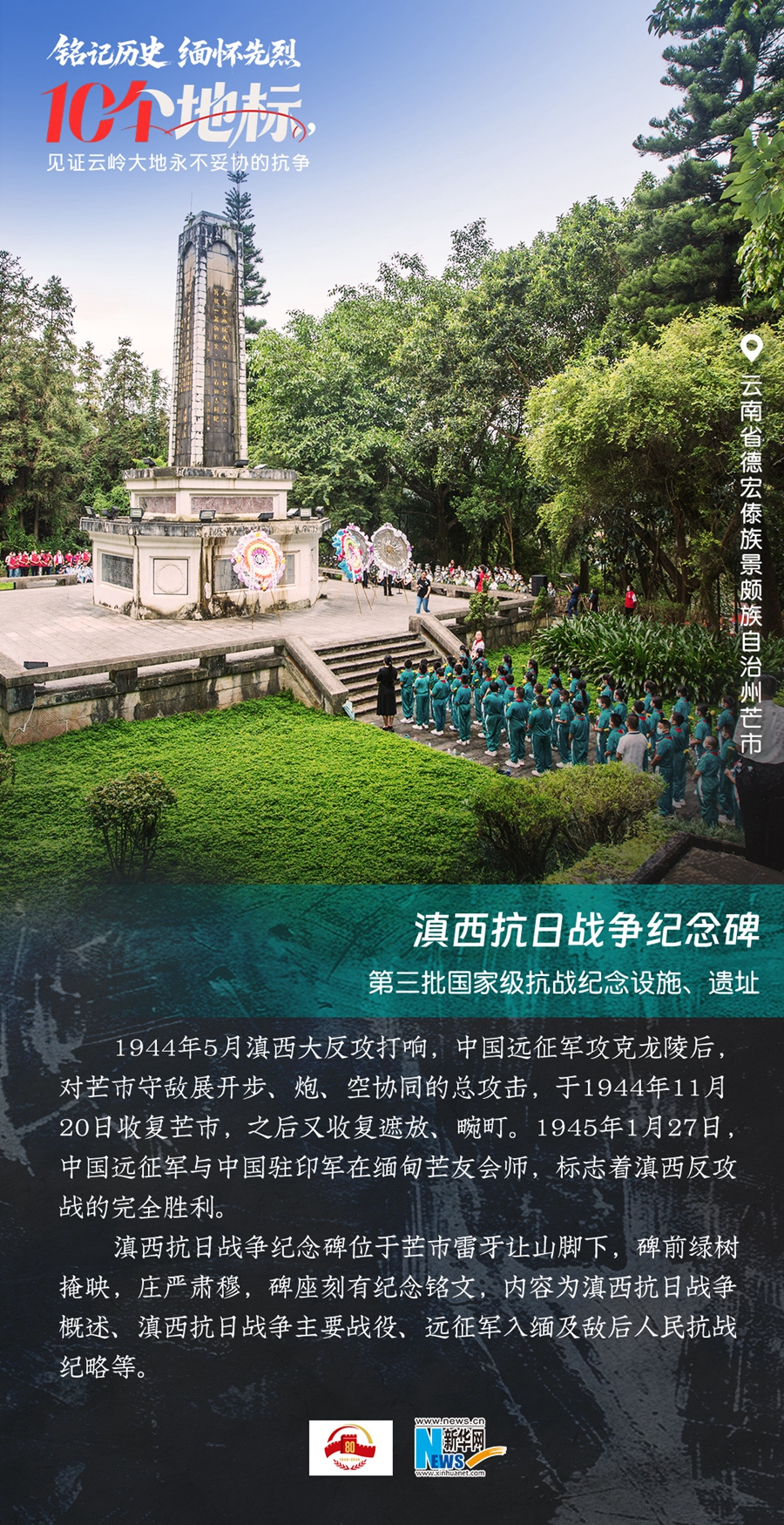 ??80年過去,曾經(jīng)的戰(zhàn)場硝煙雖散,但英氣永存。在國務(wù)院公布的前三批國家級抗戰(zhàn)紀(jì)念設(shè)施、遺址名錄中,云南省共有10個,分別為騰沖國殤墓園、騰沖滇西抗戰(zhàn)紀(jì)念館,龍陵抗日戰(zhàn)爭紀(jì)念館,國立西南聯(lián)合大學(xué)舊址,抗戰(zhàn)勝利紀(jì)念堂,松山戰(zhàn)役舊址,南洋華僑機(jī)工回國抗日紀(jì)念碑,怒江駝峰航線紀(jì)念館,施甸縣抗日江防遺跡群,滇緬公路惠通橋,滇西抗日戰(zhàn)爭紀(jì)念碑。它們承載著國人共同的歷史記憶與民族情感,也為我們學(xué)習(xí)和傳承抗戰(zhàn)精神提供了現(xiàn)實(shí)條件。