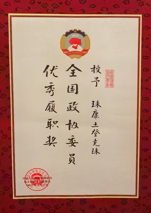 珠康?土登克珠榮獲2024年度“全國政協(xié)委員優(yōu)秀履職獎(jiǎng)”