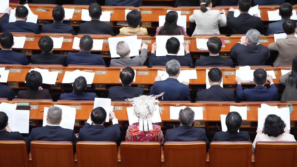 3月8日,十四屆全國人大三次會議在北京人民大會堂舉行第二次全體會議。新華社記者 翟健嵐 攝