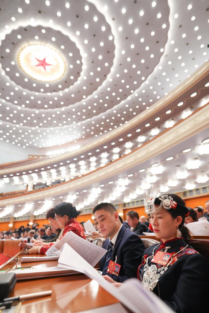 3月8日,十四屆全國人大三次會議在北京人民大會堂舉行第二次全體會議。新華社記者 盧燁 攝