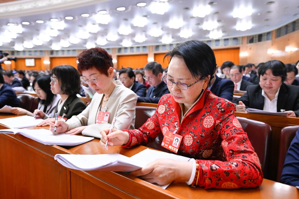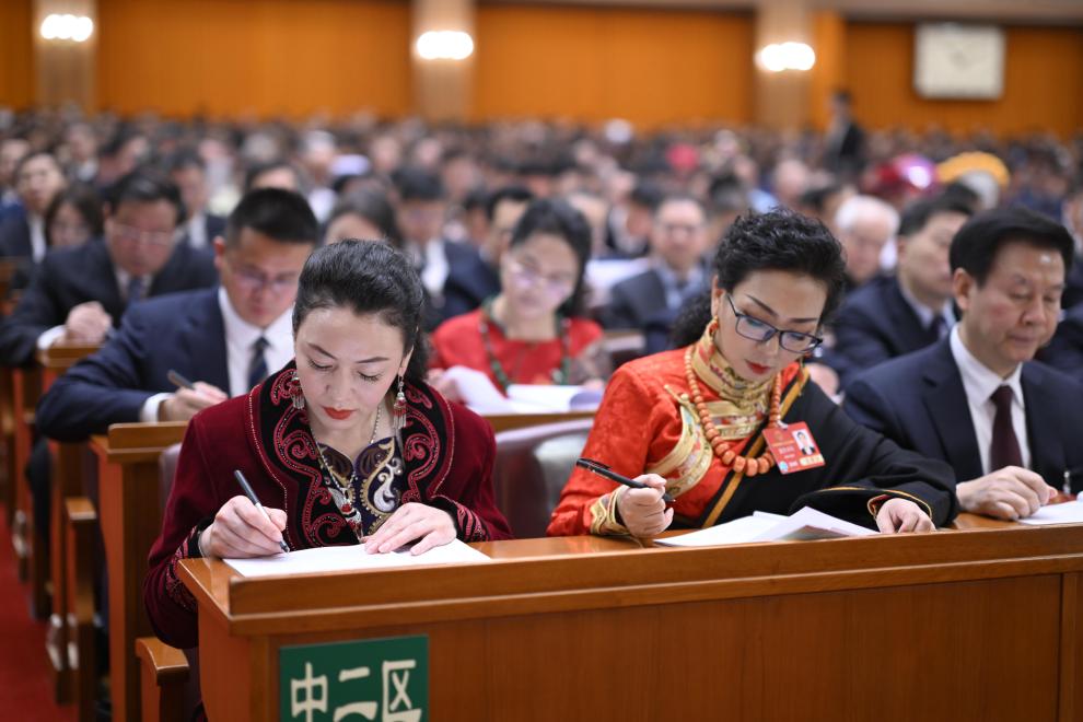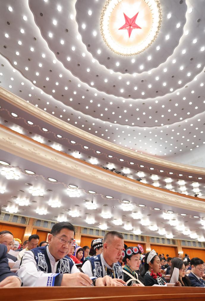 3月8日,十四屆全國人大三次會議在北京人民大會堂舉行第二次全體會議。新華社記者 李響 攝