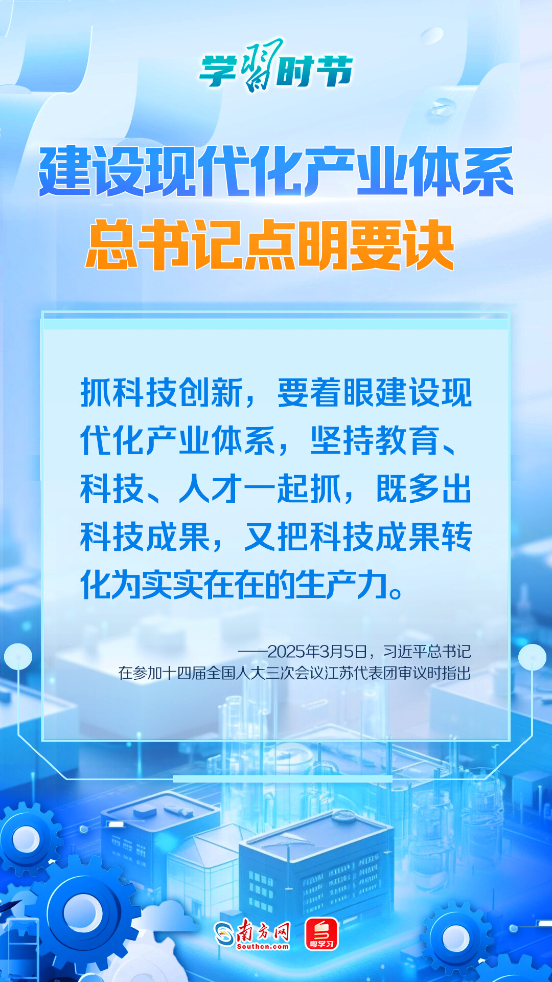 “抓科技創(chuàng)新,要著眼建設現(xiàn)代化產業(yè)體系,堅持教育、科技、人才一起抓,既多出科技成果,又把科技成果轉化為實實在在的生產力?!?月5日,習近平總書記在參加他所在的十四屆全國人大三次會議江蘇代表團審議時為建設現(xiàn)代化產業(yè)體系點明要訣,引領中國經濟在高質量發(fā)展的軌道上劈波斬浪、堅定向前。