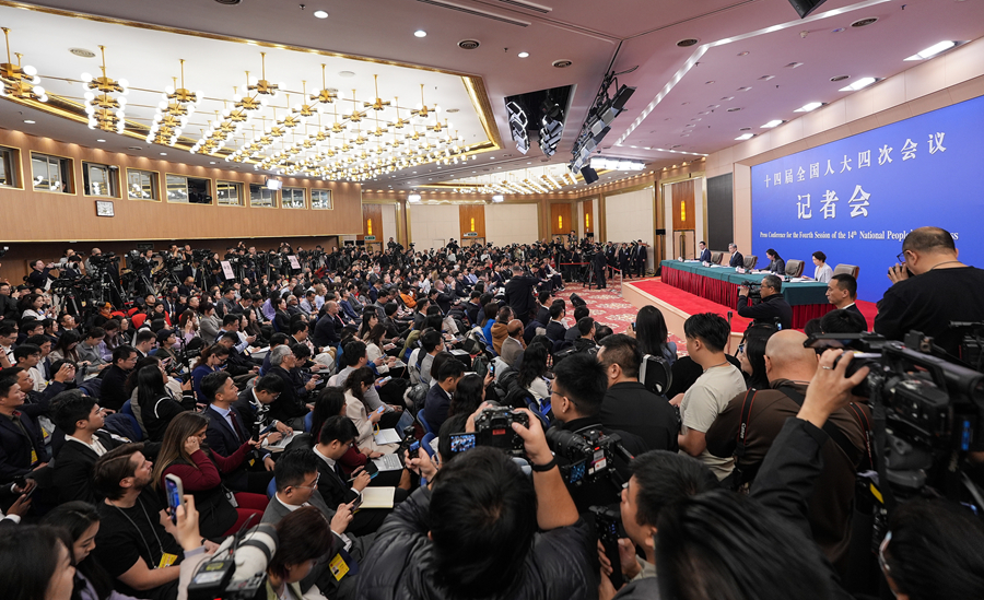 3月8日,十四屆全國人大四次會(huì)議在北京梅地亞中心新聞發(fā)布廳舉行記者會(huì)。中共中央政治局委員、外交部長王毅就中國外交政策和對(duì)外關(guān)系回答中外記者提問。這是記者在提問。新華社記者 王曦 攝