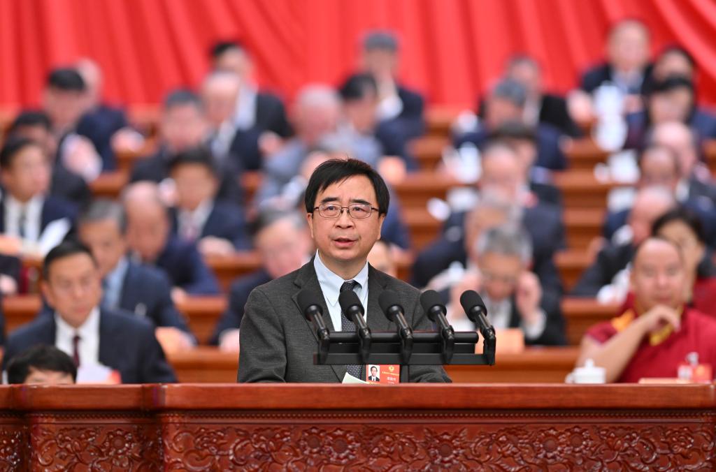 3月8日,全國政協(xié)十四屆四次會(huì)議在北京人民大會(huì)堂舉行第三次全體會(huì)議。這是何潤生委員作題為《發(fā)揮背靠祖國聯(lián)通世界優(yōu)勢(shì) 打造國際高端人才集聚高地》的發(fā)言。新華社記者 岳月偉 攝