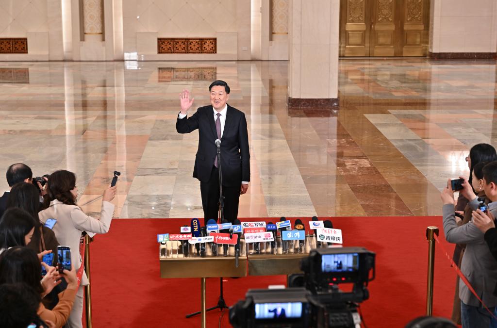 3月9日,第十四屆全國人民代表大會第四次會議第二場“部長通道”集中采訪活動在北京人民大會堂舉行。這是農(nóng)業(yè)農(nóng)村部部長韓俊接受媒體采訪。新華社記者 李鑫 攝