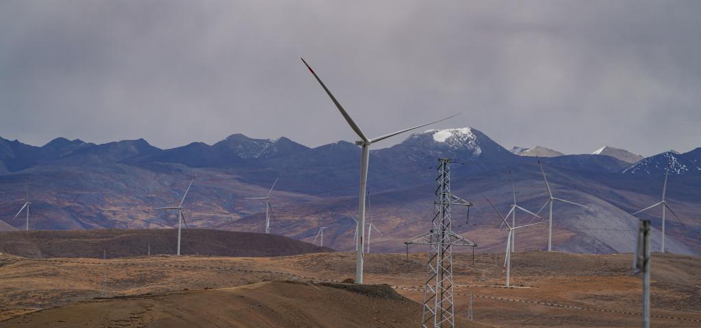 位于西藏日喀則市薩迦縣的風(fēng)力發(fā)電機(jī)組。新華社記者 晉美多吉 攝